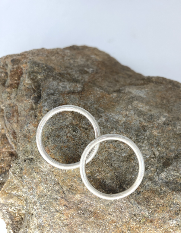 Maud, handgemaakte zilveren oorringen, mat geschuurd. Deze staan superleuk aan. Ze reflecteren het licht mooi door het geschuurde effect. Zeer stijlvol door hun eenvoud.